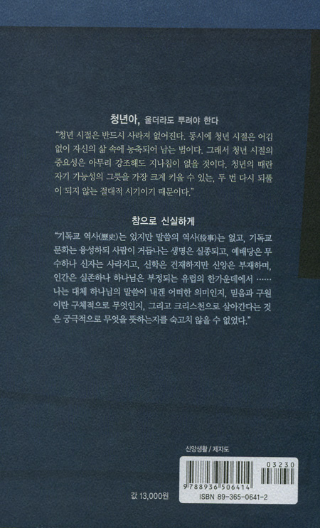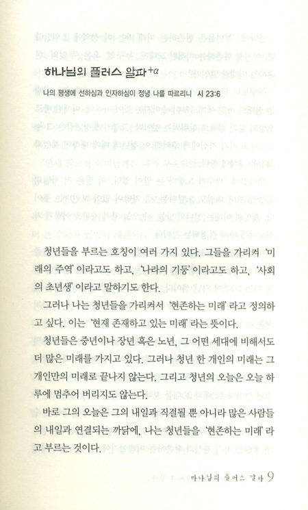 이 책에 실린 글들은, 내가 전에 목회하던 교회에서 청년들과 함께 생각했던 내용을 가다듬은 것이다. 이 책을 통해 단 한 명의 청년이라도 인생관이 새로워진다면, 그것은 전적으로 주님께서 영광 받으실 일이다.