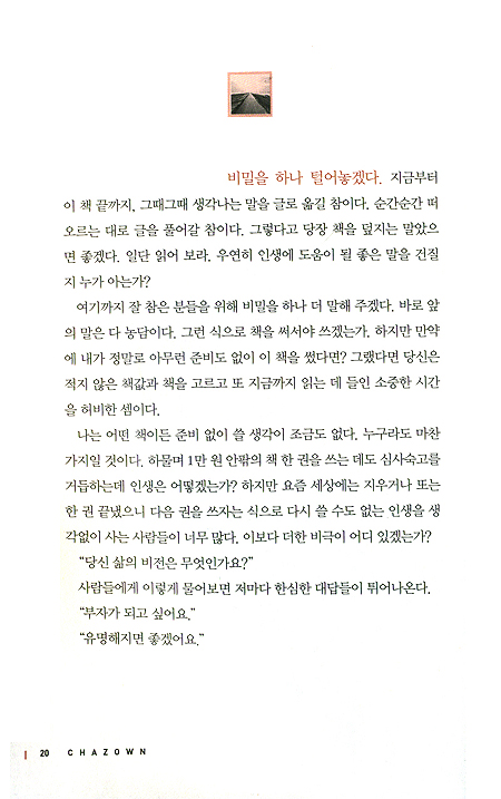 인생의 목적지를 찾지 못해 방황하는 젊은이들에게 나침반 역할을 하는 탁월한 책이다.