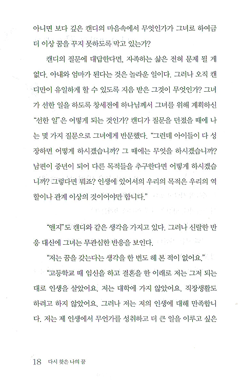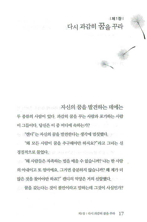 많은 여성들 가운데 여전히 갈등을 겪고 있는 사람과 그 갈등을 극복하고 자신만의 꿈을 발견하여 그 꿈을 따라 살고 있는 여성들의 이야기를 통해 당신도 당신 자신의 꿈 이야기를 다시 찾을 것이라 확신한다. 그리고 그들이 꾼 꿈의 승리 속에서 당신도 자신의 승리를 맛볼 것이라 믿는다.