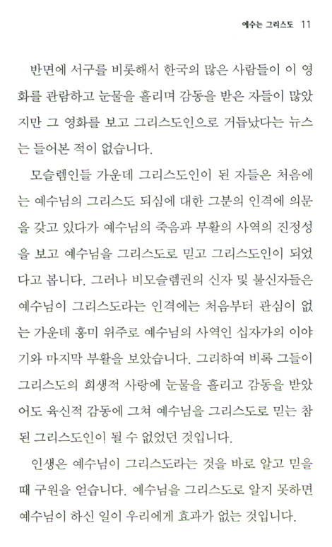 만일 한 자연인이 예수님을 신랑 구주 그리스도로 모신 신부가 된다면, 그는 엄청난 축복을 받는 자가 될 것입니다. 예수님이 하나님의 아들 그리스도로서 가지신 신분과 지위와 권능이 모두 그 신자의 것이 되기 때문입니다. 소위 운명이 바뀌는 자가 되는 것입니다. 세상에 그리스도인이 되는 축복을 능가하는 것은 아무것도 없습니다. 이 책을 읽는 가운데 예수님의 인격과 그의 사역을 바로 알아 그분을 영접하므로 이런 축복이 사람이 되기를 주의 이름으로 축원합니다.