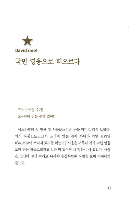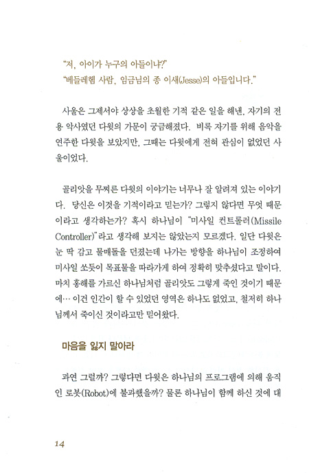 이 책을 읽으면서 "하나님 우리에게도 다윗과 같은 대통령을!"라는 기도가 절로 나왔다.