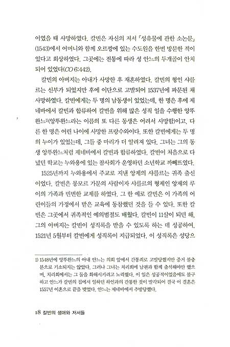 하게 번역 감수했다는 점이다.본인은 이 번역서가 한국의 칼빈연구에 지대한 공헌을 할 것이라 확신한다.