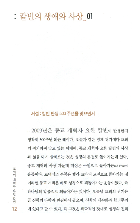 01 _ 서설: 칼빈의 생애와 사상 · 012