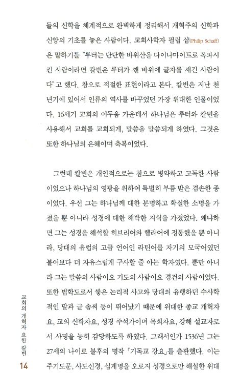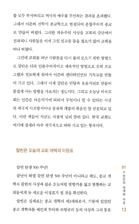 이 책은 또한 칼빈 탕생 500주년에 즈음해서 필자가 경영하는 한국 칼빈주의 연구원과 칼빈박물관을 찾아오는 이들에게 칼빈에 대한 이해의 폭을 넓히는 데 그 목적이 있다.