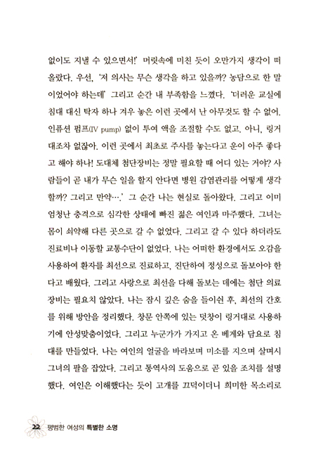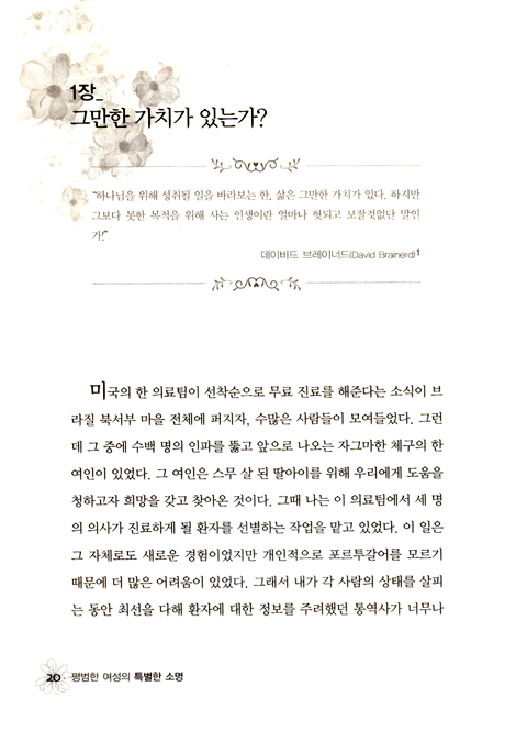 『평범한 여성의 특별한 소명』은 실제 평범한 크리스천으로 살던 한 여인이 주님의 부르심에 순종하여 그 인생의 가치를 깨닫고 목적을 발견해 가는 과정을 그친 책이다.