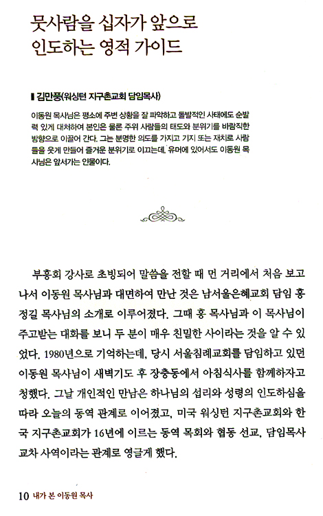 이런 저에게 선배, 동료, 그리고 후배 사역자들이 『내 본 이동원 목사』를 펴냄은