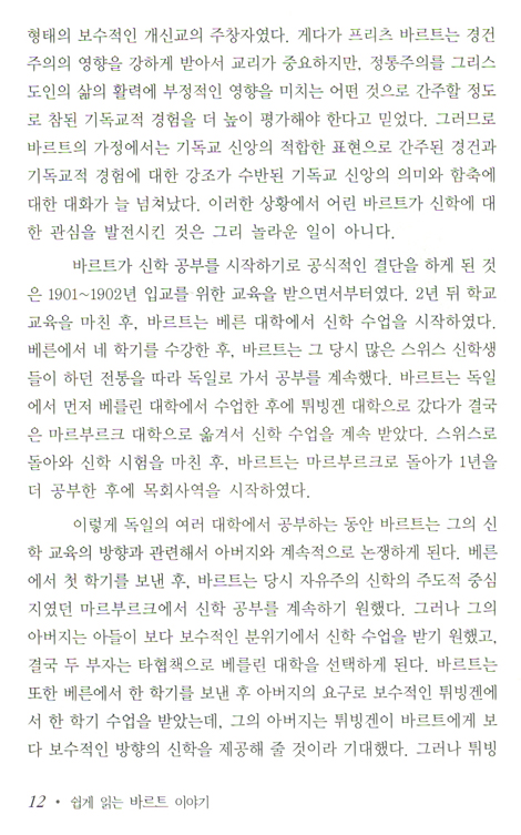 영어권 세계의 대부분은 여전히 칼 바르트에 대한 ‘삽화적 수준’의 이해에 머물고 있다. 그렇다면 이러한 전형적인 피상적 이해를 무너뜨리기 위해 실제 삽화가 들어 있는 책이 등장해야만 하는 것이 얼마나 적절한 것인가? 프랑크의 「쉽게 읽는 바르트 이야기」는 바젤의 위대한 사상가에 대한 정확하고, 통찰력 넘치고, 때로는 기발한 소개의 책(개론)을 제공한다.