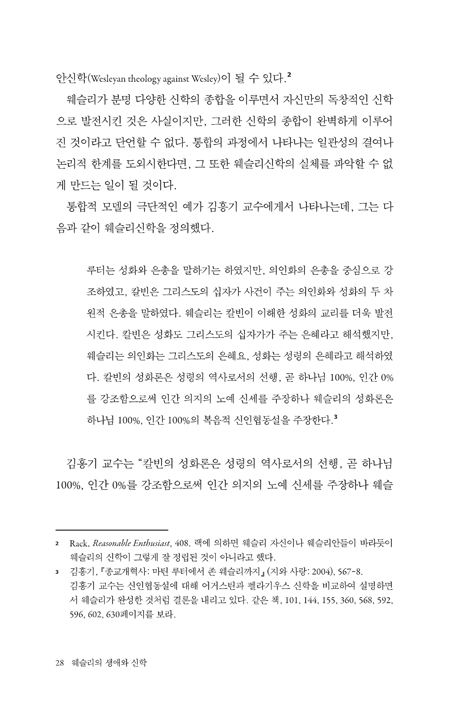 웨슬리를 신학자로 인식하는 일은 그의 신학이 가장 우수하고 완전한 신학이라고 주장하는 것이 아니다. 오히려 그의 신학이 더욱 발전되고 교정될 필요가 있음을 인식하는 일이기도 하다. 그런 의미에서 오늘날 웨슬리안들은 웨슬리신학으로부터 배울뿐만 아니라 그의 신학을 더욱 발전시킬 책임과 의무를 갖고 있다는 사실을 분명히 인식할 필요가 있다. 896P