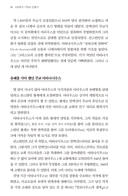 역자는 오랜 이민 목회를 통해 국문과 영문 양자의 문체에 있어서 탁월한 역량을 바탕으로 물 흐르듯 글을 써 내려가는 검증된 신학자다. 한국 교회의 독자들이 이 책을 통해 131명의 기독교 인물을 만나고, 그 만남이 새로운 출발점이 되어 더 많은 만남으로 이어지기를 기대하며 이 책을 적극 추천한다.