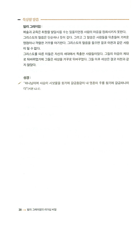 빌리 그레이엄은 나의 영혼에 겨자씨를 뿌렸다.그는 나를 길로 인도하였고 나는 길을 따라