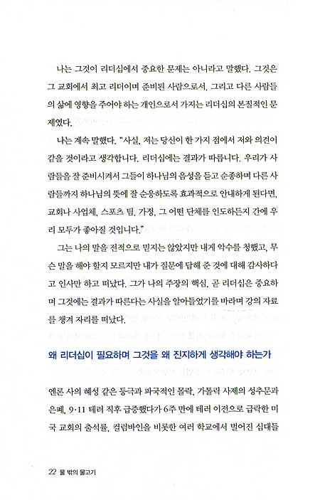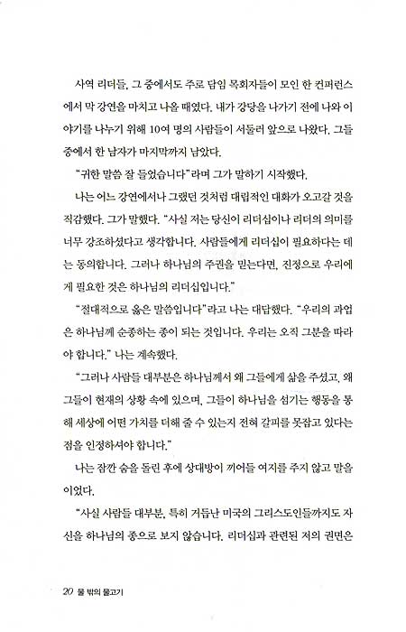 이 책 '물 밖의 물고기' 에서 바나는 효과적인 리더십과 그렇지 못한 리더십에 대하여 새로운 관점을 나누어