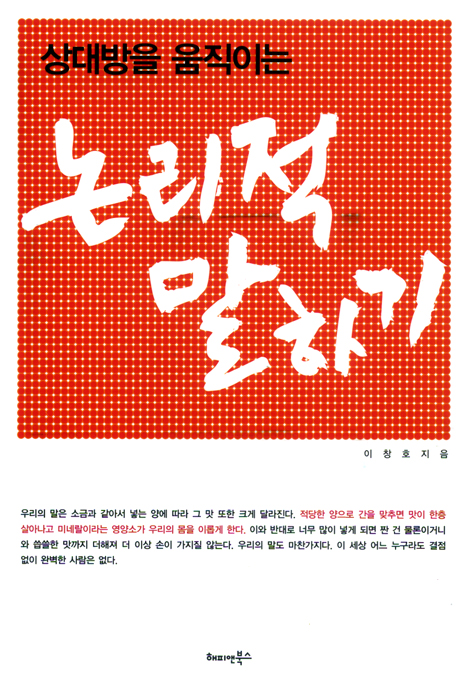 논리적 말하기란? / 생명이 있는 ‘말’ / 더 이상 행동으로만 보여줄 수는 없다 / 권위주의 사회에서는 신분과 출신이 설득한다 / 탈권주의 사회에서는 개인의 능력으로 설득한다 / 능력은 논리적인 말을 통해서 표출된다 / 정보화 사회는 말이 곧 능력이다 / 당신이 하는 대화의 주제는 무엇입니까? / 논리적 말하기 능력이 핵심경쟁력이다 / 논리적으로 말하는 기술, 노력하면 누구나 잘 할 수 있다 / ‘논리’와 ‘비논리’의 차이점은 무엇인가 / 논리적으로 말해야 하는 이유