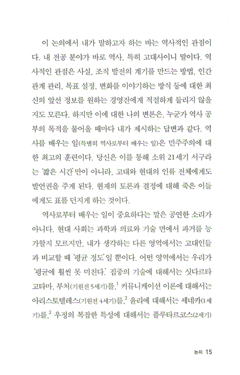 서양 고대사를 전공한 역사학자답게, 저자는 오늘날까지 영향력을 발휘하고 있는 역사 속 인물들의 사례를 다양하게 검토하면서, 겸손의 논리와 미학, 겸손의 효용과 리더십과의 관계, 겸손을 함양하는 방법 등을 다각도로 파고든다. 명예를 더 중요하게 여겨 겸손을 폄하했던 고대 세계부터, 겸손에 대한 사람들의 시각을 근본적으로 바꿔놓은 예수의 십자가 처형, 현대 과학의 초석을 마련한 갈릴레오와 뉴턴, 위대한 기업을 일궈낸 현대의 CEO들까지, 간결하고 핵심적인 주장에 풍부한 예를 곁들여 겸손의 리더십을 흥미롭게 풀어냈다. 이 책은 “겸손의 경이로운 깊이와 영향력을 다양한 각도에서 조명한 역작”이라는 찬사를 받으며 2011년 〈리더십 저널〉이 뽑은 올해의 책 '베스트 오브 베스트'에 선정된 바 있다.