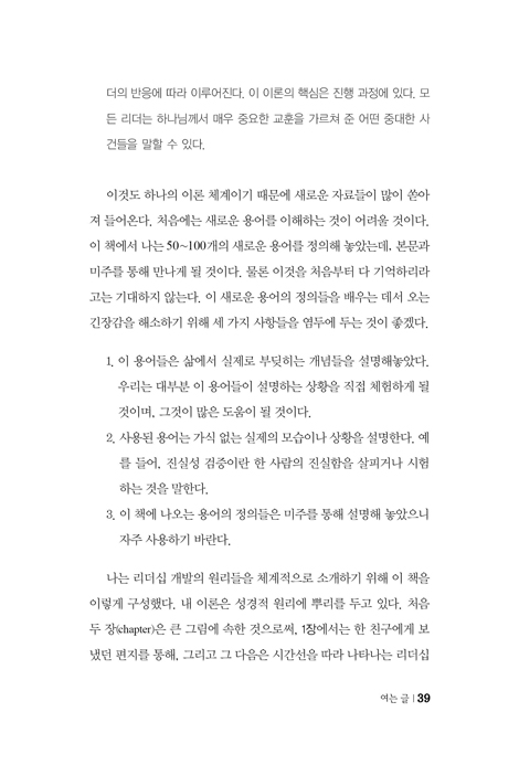 ▶ ‘성숙한 사역은 성숙한 성품에서 나온다.’ 이를 위해 리더의 성품을 어떻게 훈련하고 개발하는지를 배운다.