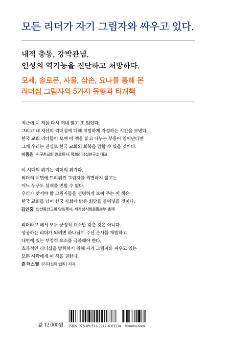 이 시대의 위기는 리더의 위기다.리더의 이면에 드리워진 그림자를 직면하지 않고는어느 누구도 실패를 면할 수 없다.우리가 맞서야 할 그림자들을 선명하게 보여 주는 이 책은한국 교회를 넘어 한국 사회에 밝은 희망을 불어넣을 것이다.
