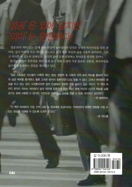 본서는 인생의 후반전을 의미 있게 살기 위해 인생의 가장 중요한 전환점, 하프타임을 슬기롭게