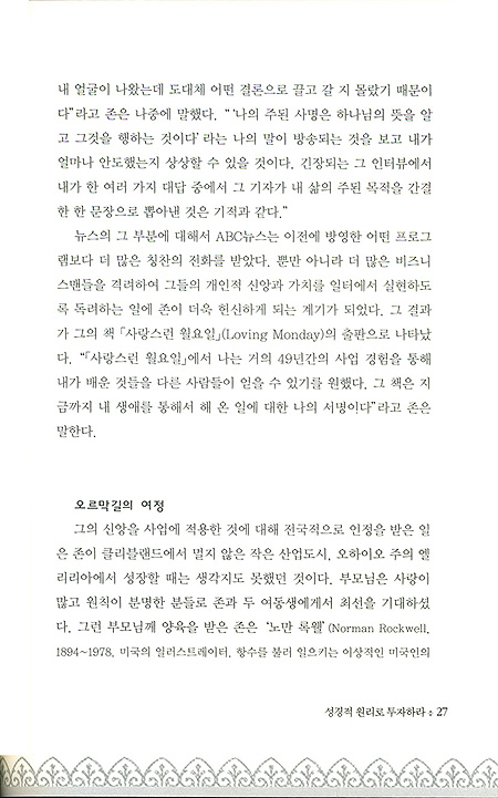 주로 나누고 엄성된 글들을 잘 배치해 놓았다.특히 리더십의 대가 존 맥스웰,크리스천들이 어떻게 재정을 관
