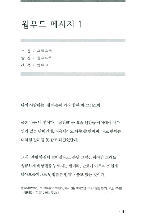 이제는 초보 악마 딱지를 떼고 새로운 신참 악마의 멘토가 된 웜우드의 메일이 공개되었다.