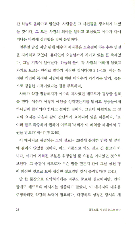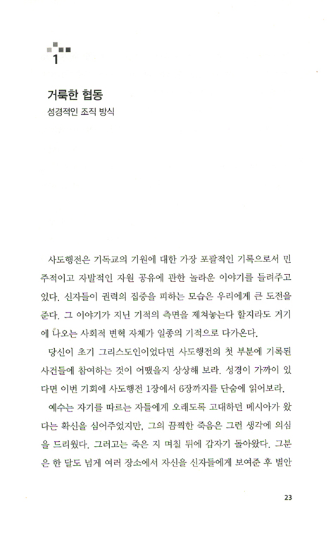 저자는 “교단 간 분열로 나뉜 그리스도인들이 다른 그리스도인들과 잘 지내기 위해, 믿지 않는 이웃들과 다리를 놓기 위해서라도 협동이 필요하다”며 “예수 정신을 회복하고 이 땅에 하나님 나라를 이루는 일에 앞장서야 한다”고 강조한다. 성경 속 협동의 정신을 회복해 ‘거룩한 협동’을 꿈 꾸고 있는가. 그렇다면 이 책을 한번 읽어보자.