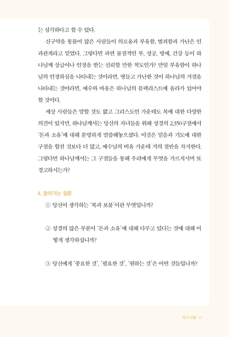 당신의 모든 소유는 하나님께서 맡기신 것인가, 아니면 당신이 주인인가? 현재 당신의 재정관리는 어떤 원칙으로 이뤄지고 있는가? 당신의 재정에서 드림과 나눔, 저축과 소비의 우선순위는 정해져 있는가? 그 모든 것을 주님 앞에서 결산할 날이 온다는 것을 아는가?
