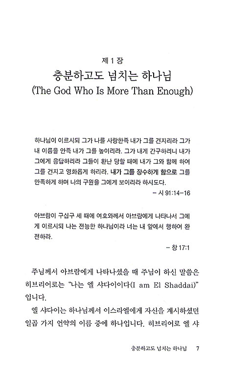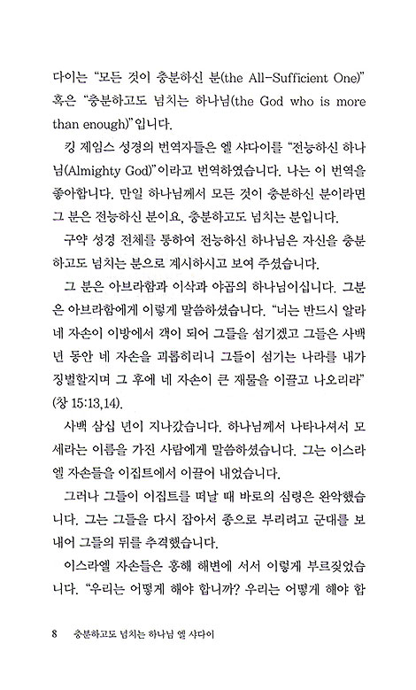 엘 샤다이는 해긴 목사님의 가장 많이 알려지고 가장 사랑 받는 설교에 근거하여 만든 책입니다. 이 설교는 우리의 사랑하시는 하늘의 아버지는 오래 살게 하시는 풍성하신 하나님이라는 것을 보여 주고 있습니다. 이 책에서 당신이 누릴 수 있도록, 당신을 위해 하나님께서 의도하신 모든 것을 발견하십시오.