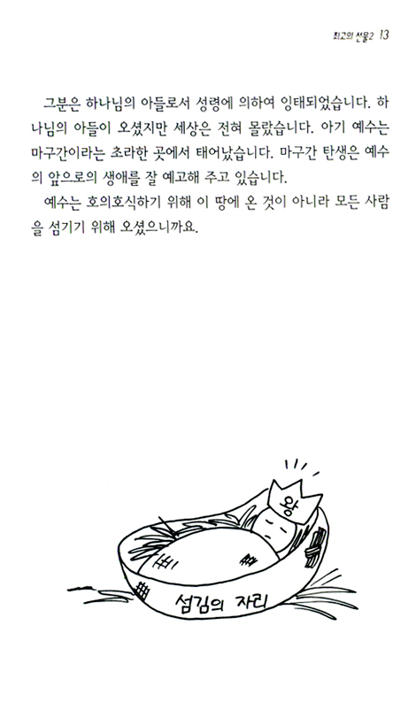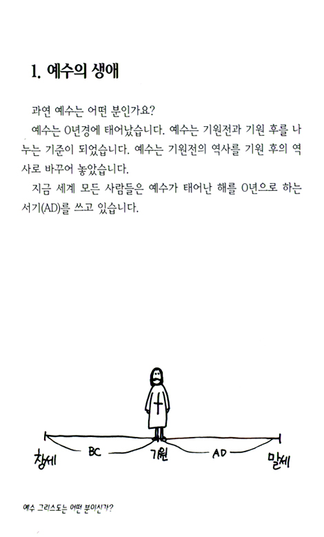 새 가족 양육 교재가 너무 딱딱해도 흥미가 없고 너무 영적이어도 새 신자에게는 거부감을 주겠다 싶어서 만화 양식을 교재에 도입해 보았습니다. 기독교 신앙의 기본적이고도 핵심적인 내용을 각녈한 일러스트와 조화시켜서 새 신자들이 낯선 신앙의 세계에 쉽게 접근할 수 있도록 시도해 본 것입니다. 본문에 나오는 성경 말씀은 새 신자가 이해하기 쉬운 현대어로 번역된 표준새번역 성경을 인용하였습니다.