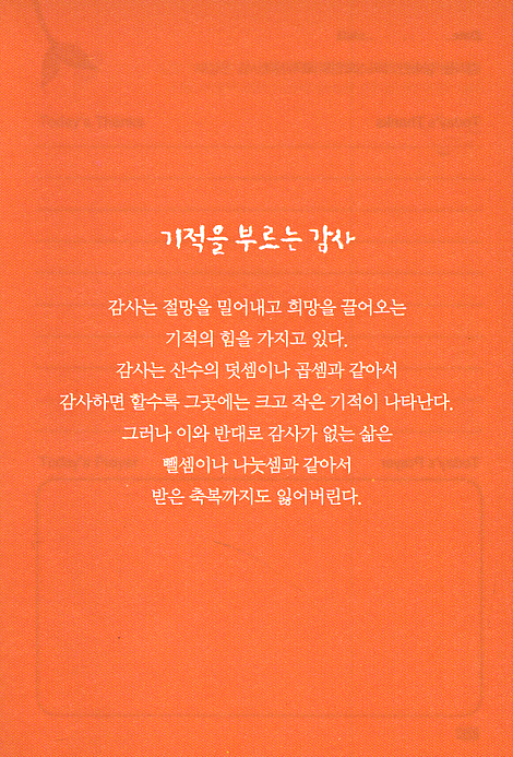 분주한 일상 그리고 어제와 다르지 않은 오늘이 반복되는 듯한 매일매일의 삶 속에서 하나님의 소중한 선물인 하루를 너무 홀대하고 있지는 않은지요. <평생감사 365노트>는 ‘감사하는 습관’이란 열쇠를 통해 여러분들 각자가 소유한 행복의 문을 열어드리기 위해 마련되었습니다. 숨 돌릴 겨를 없이 바빴던 하루 속에서, 작은 감사를 떠올리는 것이 얼마나 소중한 발견인지 알게 될 것입니다. 처음에는 ‘과연 오늘 감사할 일이 있기는 한가’하는 생각이 들기도 하겠지만 1년 동안 꾸준히 실천해본다면 뜻밖의 행복감에 젖어드는 자신을 보게 될 것입니다.