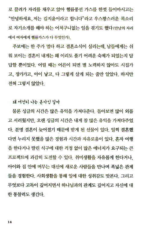 결혼을 선택하지 않은 그녀들에게 / 넌크리스천과 교제를 시작한 당신에게 / 엄마는 엄마, 나는 나 / 결혼, 아줌마가 되다
