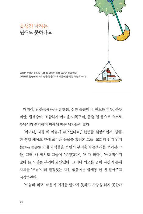 또한 크리스천 남자들의 평생 고민인 성적인 문제부터 소개팅에서 어김없이 튀어나오는 잘못된 패턴들까지 요목조목 짚어가며 현실적인 정보를 제공한다.