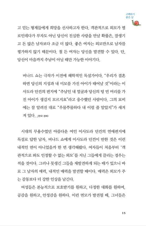 김지윤 소장님의 글은 내게 연애 감정을 뛰어넘어 삶에 대해 고민하게 만들었답니다. 책 한 구절, 또 한 구절을 가슴에 오랫동안 새기고 열심히 실천했죠. 지금은 어떻게 되었냐구요? 그렇습니다. 현재 저는 소개팅 했던 사람과 꽃피는 연애 중입니다.