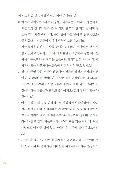 이 책은 건전한 부부가 참으로 바람직한 아이를 임신하기 위해, 임신 전 6개월간 실천할 것만 모았다. 그렇게 하면 그 부부도 차별된 경쟁력을 가질 수 있고, 그 아이는 더 바랄 것이 없는 사람이 된다.