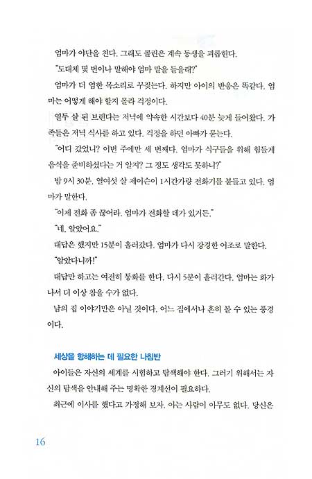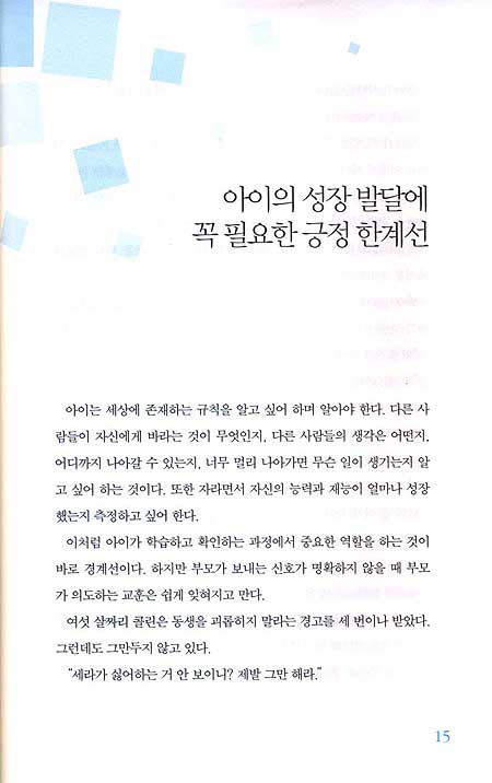 아이는 자신의 한계를 끝없이 시험하고 탐색하는 과정을 거치며 성장한다.이때 부모가 긍정 한계선을 설정해 놓지
