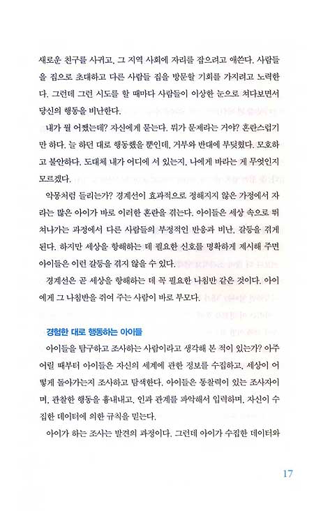 여기는 부모의 믿음이다.또한 긍정 한계선은 아이에게 책임감과 자긍심을 주어 자신의 세계를 구축해 나가도록 하