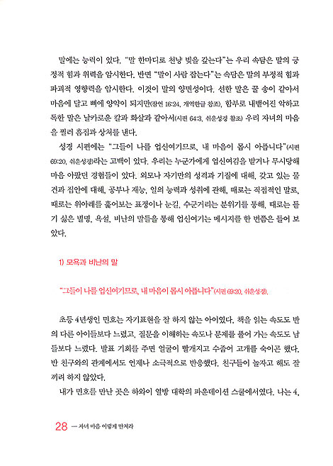 오늘날 교회가 이 사회를 위해 기여할 수 있는 일은 이 나라의 아동, 청소년이 올바르게 자라도록 인도하는 일이라고 생각한다. 그러기 위해서는 부모들의 생각도 바뀌어야 할 것이다. 그런 목적으로 이 책이 쓰여진다면 우리 어른들의 지침서로의 역할을 다할 것으로 믿는다.