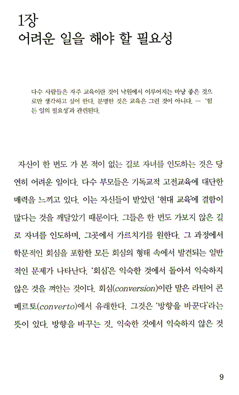 “지금 우리 교육의 황폐함을 생각해 볼 때, 기독교적 고전교육은 우리에게 매우 필요한 선택이라고 말할 수 있다. 기독교인 부모들은 현대 교육의 실패를 직면하면서 이전보다 더 실질적이고 내용 있는 대안에 배고파하고 있다. 고전교육은 이미 과거게 맛보았던 것이며, 좋은 명성을 얻은 것이다. 이런 이유로 나는 기독교적 통찰 안에서, 회복된 고전교육이 실로 내용 있는 대안을 제시해 줄 것이라 믿는다.”