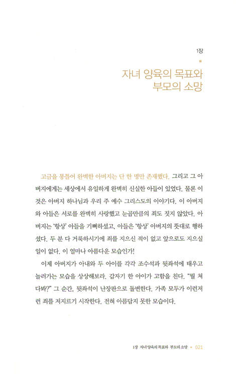 이 책은 사람마다 제 소견에 옳은 대로 자녀를 키우는 이 어두운 시대에 크리스천 부모들의 손에 쥐어주는 나침반이다.