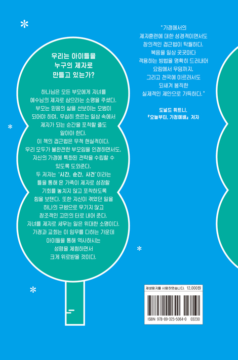 당신이 아무리 못난 부모라고 해도 하나님은 당신을 통해 자녀들을 만나 주신다고 믿는가? 그렇다면 이 책을 봐야 한다. 당신의 가정에 특화된 제자훈련법을 형성해 줄 심오하면서도 실용적인 안내서다.