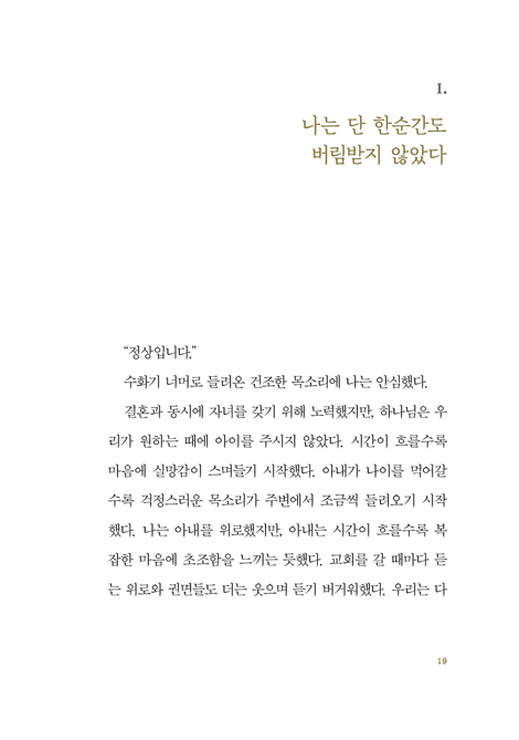 세상을 원망하며 청소년기를 보내던 그는 어느 날 자신을 찾아오신 예수님을 만났다. 하나님의 구원에 감격해 전부를 드리고 싶은 마음에 사역자의 길을 선택했지만, 주님이 자신을 사랑하신다는 사실을 믿지 못하는 이십 대를 보냈다. 그런 그에게 하나님은 가정을 허락하시고, 아내와 자녀를 통해 자신의 사랑을 보이셨다. 그는 부모가 된 뒤에야 비로소 하나님의 자녀로 사는 법을 배우기 시작했다.