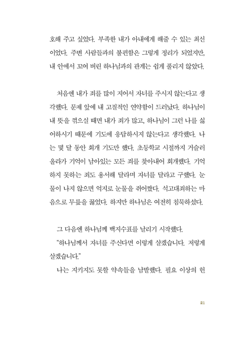 순간 내 영이 개운해지는 것을 경험했다. 나는 문제가 해결될 때까지는 평안을 누리지 못하는 연약한 사람이었다. 하지만 하나님은 내가 문제의 시작부터 평안하길 원하셨다.