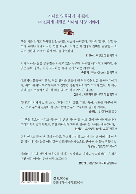 이 책을 읽으며 위성도 목사님이 만난 하나님을 저도 함께 만나곤 했습니다. 그리고 아이들의 아빠로, 또한 하나님의 자녀로 살아가는 지혜를 배웠습니다.