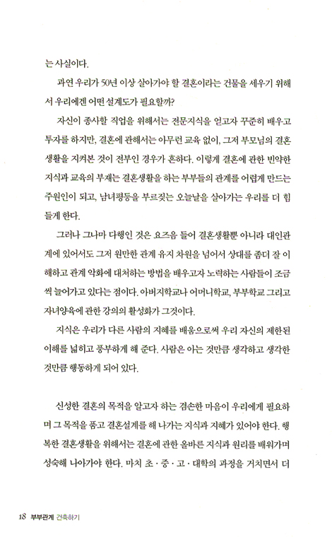 20여 년 전부터 결혼에 관한 책을 쓰기로 결심한 김 목사는 최근 다년간에 걸쳐 온갖 열정과 정성을 바쳐 본서를 완성했다. 이 책은 행복을 원하는 사람은 누구나 다 읽을 수 있는 책이다. 결혼생활을 마치 건축(집짓기)에 비유하여 결혼은 무엇이며 어떤 덕목이 어떤 역할을 하는지에 대해 알기 쉽게 설명하고 있다. 보다 나은 결혼생활을 위한 가장 절실하고 핵심적인 메시지가 바로 이 책안에 담겨져 있다.