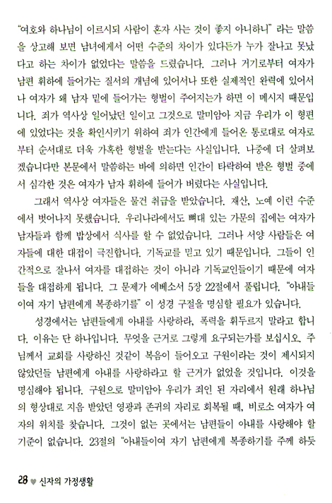 왜냐하면, 성경이 그것을 가르치기 때문입니다. 모든 삶의 영역 속에서 하나님의 말씀 앞에 무릎 꿇는 것이 신자의 본분이라면, 가정에 대한 말씀에서도 그런 하나님과의 진솔한 만남이 있어야만 됩니다.