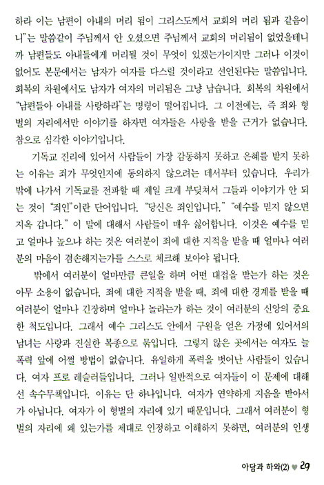 오히려 하나님께서 처음 그분의 말씀으로 가르치시고 훈련시키시며 만드셨던 곳이 가정이라고 성경은 말씀합니다. 에덴에서의 아담의 가정부터 하나님은 인간의 모든 부분이 자신의 거룩과 공의와 사랑 속에 드러나도록 하셨습니다. 하나님의 말씀의 기준들은 마치 성능 좋은 내시경같이 우리가 게으르고 감추고 싶어 하는 부분까지 뚫고 내려옵니다.