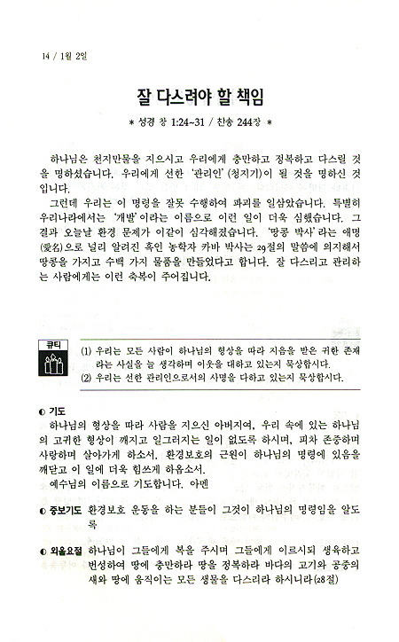 개인 신앙 성장을 위해 매일 매일의 성구를