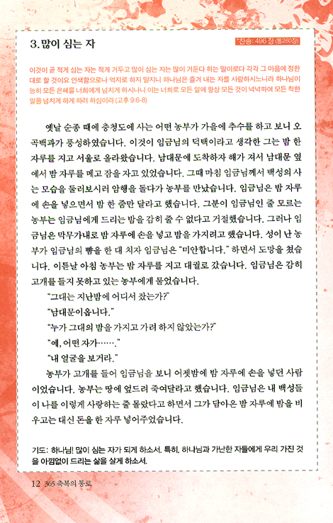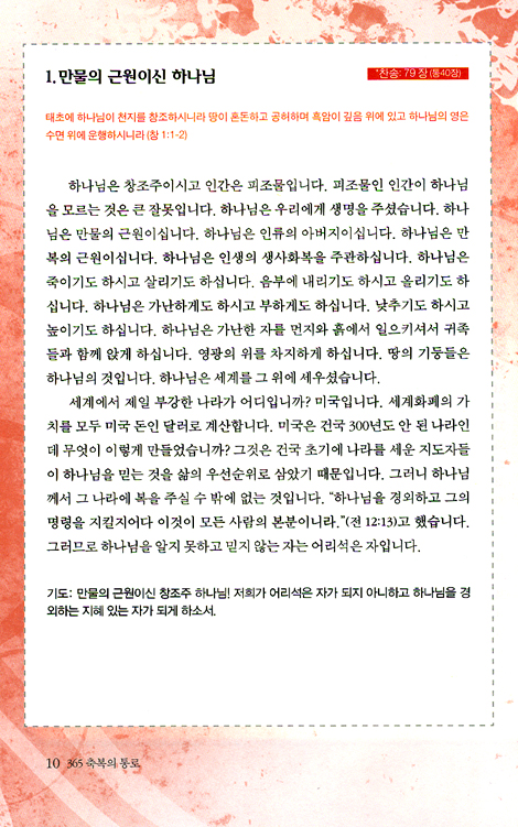 “365 축복의 통로” 매일 하나님께 드리는 가정예배라는 제목으로 365일 가정 예배를 드릴 수 있도록 이 책을 만들었습니다.