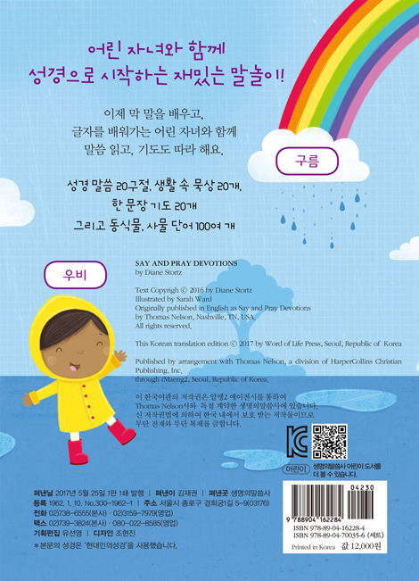 이제 막 말을 배우고, 글자를 익혀가는 어린 자녀들에게 도움이 되는 교구와 책은 너무 많습니다. 옹알이를 하는 아기들에게까지 책을 읽어주고, 책을 만지고 놀게 해주려는 부모들도 많습니다. 크리스천 부모라면 여기에서 그치지 않고 아이가 말과 글을 배움과 동시에 성경을 가까이 하기를 바라는 마음도 클 것입니다.