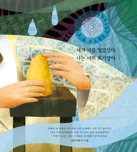 언젠가 꼭 하나님 사랑이 절절히 묻어난 그림책을 세상 모든 이에게 전해주고 싶었습니다. 오직 하나님 사랑만으로 꽉 채워진 책 말입니다. <시와그림> 7집 앨범에 수록된 ‘토기장이’를 듣는 순간, 강력한 힘이 마음을 사로잡는 것을 느낄 수 있었습니다. 내 아이와 바로 나를 향한 하나님의 사랑 고백이 진실 되게 요동치는 것을 깊이 느꼈습니다. 창조주가 계시고, 그분이 한없는 사랑으로 그 자녀를 이끄신다는 아름다운 비밀을 세상 모든 이들이 알았으면 좋겠다는 강한 바람이 계속해서 들었습니다.