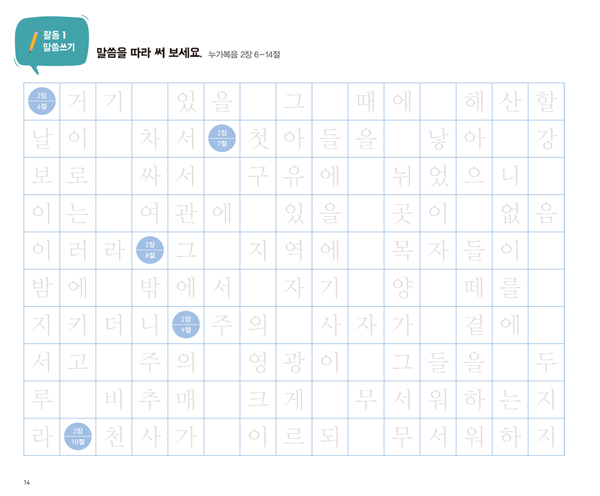 - 성경 이야기를 읽고, 성경을 따라 쓰며 하나님의 말씀을 깊이 묵상할 수 있어요.