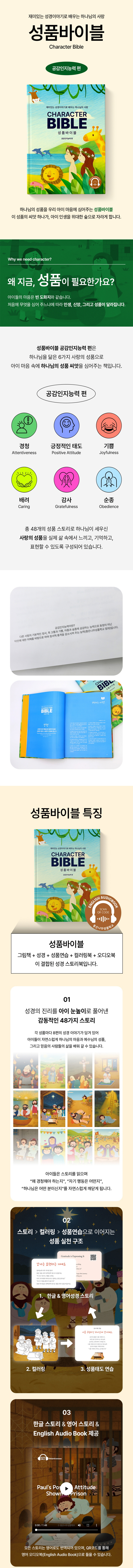 다음 세대의 인생에 가장 먼저 심어야 할 것은 지식이나 성취가 아니라 하나님을 아는 것, 그리고 하나님의 성품이다. 『성품바이블(Character Bible)』은 이러한 성경적 교육관을 토대로, 다음 세대의 생각·감정·행동 전반에 하나님의 성품이 자연스럽게 스며들도록 돕는 성품성경 스토리북이다.