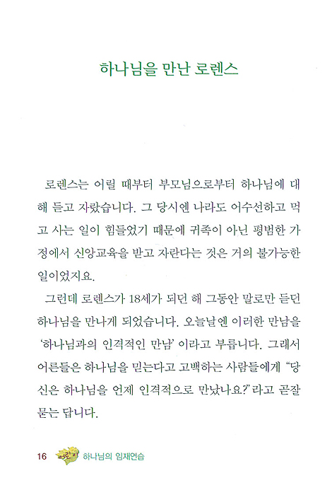 로렌스 형제가 하나님을 만나면서 느낀 기쁨을 어린이들에게 전해주세요~~
